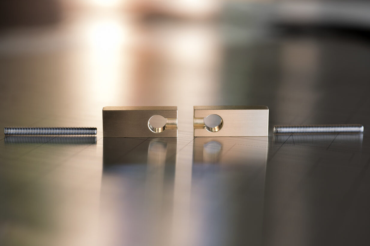 INDEX エレキベース部品 個人様からご依頼のエレキベースSteinbergerの部品を製作いたしました。 現物をお預かりして、採寸から承りました。 真鍮(採寸、図面作成、マシニングセンター、ヘアライン研磨)) ▷よくある質問 ▶️真鍮の加工は出来ますか?